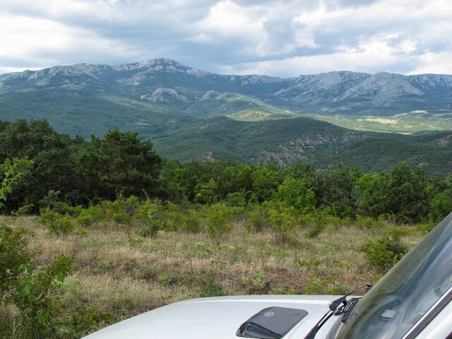 В Солнечногорском в очередной пробке на, извивающемся вдоль берега шоссе, я, немного поколебавшись, повернул направо в сторону гор. Еще в Рыбачьем обратил внимание на снующие с компаниями отдыхающих или поджидающие клиентов шустрые УАЗы без тентов. Постепенно их становилось все больше и больше. Дорога слегка петляла и понемногу поднималась в горы по водоразделу рек Улу-Узень, впадающей в море в Солнечногорском и Орта-Узень, впадающей в Малореченском. По левую руку вырастали отроги Северной Демерджи и ее яйлы, а по правую, манила лунными пейзажами Караби-яйла