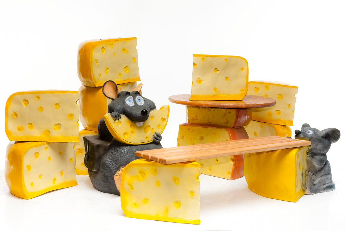Сложилось интересное мнение о том, что сыр является одним из товаров повседневного спроса, собственно, поэтому и нуждается в самой необычной рекламе. Вашему вниманию предлагается 3D макет - Лакомый кусочек сыра, который невероятно реалистичен, возбуждает аппетит, соблазняя натуральной фактурностью и цветовой палитрой. Подобную рекламу можно выставить в любом месте, в помещении или на улице в любую погоду. Цветовая гамма и размер досконально продуманы, объект визуально привлекателен с дальних расстояний и вблизи. Подобная реклама сыра рентабельна и эффективна для супермаркетов и специализированных магазинов, заведений общественного питания. Кусок сыра выполненный из стеклопластика - это практичный и мощный стоппер, Мышонок с Сыром очень привлекательный рекламный герой , котрый поможет привлечь внимание к вашему бизнесу и несомненно понравится клиентам. Разместить рекламное оборудование можно около торговой точки или специализированного магазинчика. Оформить кафе в сырном с