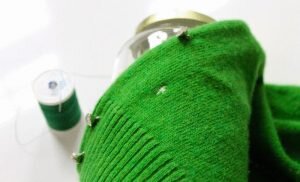 Предварительно обработайте поврежденную вещь Перед тем как возвращать к жизни порвавшийся или растянувшийся шерстяной свитер или платье, необходимо тщательно выстирать и погладить ткань. Это важно для того, чтобы при штопке или вязке изделие не потеряло свою форму. Для стирки используйте воду температурой около 30 градусов и мыльную стружку или стиральный порошок. Не выжимайте шерстяные вещи путем выкручивания, иначе они могут не вернуться в изначальную форму при высыхании. Освободите пространство для работы В случае, если поврежденный участок ткани расположен в труднодоступном месте, одежду придется аккуратно распороть по шву. Таким образом вы избежите случайного перетягивания ткани и при реставрации не заденете и не повредите целые участки. Заштопайте порвавшуюся или растянувшуюся вещь прямыми стежками Вязаные вещи имеют свойство распускаться или растягиваться. В случае подобного дефекта поможет аккуратная штопка. Чтобы починить шерстяную ткань, возьмите те же или очень похожие нит