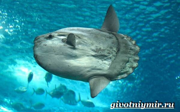 Свое название рыба луна получила из-за строения тела. Задняя часть и хвост этой рыбы атрофировались, поэтому форма тела напоминает диск. Но кому-то она больше напоминает луну, отсюда и название. Надо сказать, что у рыбы луны совсем не одно название. В латинском языке она именуется, как рыба жернов (Mola mola), а немцы называют ее рыба солнце,