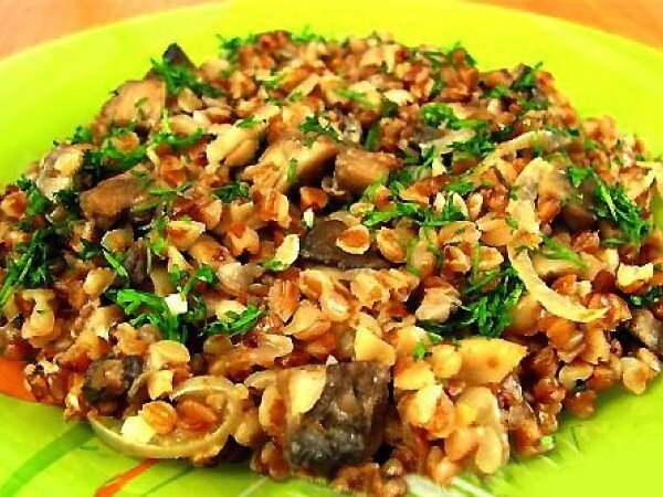 Для такого замечательного витаминного и диетического блюда из гречневой крупы можно использовать лисички в любом виде, даже замороженные. Что же касается зелени, то самым лучшим вариантом может стать укроп или кинза. Итак, для приготовления гречки диетического с зеленью, луком и лисичками понадобятся такие компоненты как: - зелень свежая, например, укроп (один пучок среднего размера); - крупа гречневая самого лучшего качества (один полный стакан); - масло оливковое (четыре ст. ложки); - лисички свежие (три горсти); - мелкомолотый черный перец (на свой вкус); - дольки чеснока крупные (на свой вкус); - репчатый лук среднего размера (одна штука); - мелкомолотая соль каменная (на свой вкус). Очень тщательно сначала промыть всю гречневую крупу, затем пересыпать ее в небольшую толстостенную кастрюлю и до закипания готовить, затем уменьшить огонь, добавить немного соли, закрыть посуду крышкой. Продолжить процесс готовки гречневой крупы уже до полной готовности, в это же время почистить одну
