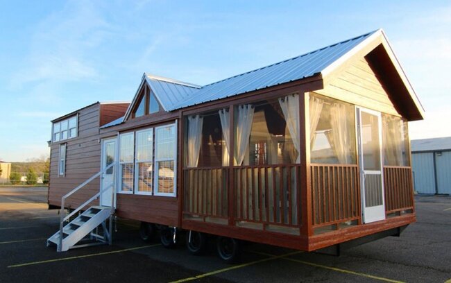 Многие люди хотели бы отправиться в путешествие большой компанией. Увлекательные приключения, которые все члены семьи переживают сообща, доставляют огромное удовольствие. Но, как правило, семейные поездки, да еще с детьми, связаны с многочисленными неудобствами. Недавно талантливые дизайнеры из архитектурной студии Rustic River Park Homes нашли остроумное решение этой проблемы. Они предлагают путешественникам свой новый дом на колесах. Нет, это не обычный трейлер или крохотное жилище. Это полноценный дом, в котором с комфортом могут разместиться пять человек. Внутренний интерьер домика выглядит очень уютно. Для отделки было использовано натуральное дерево, а стильная мебель добавляет обстановке элегантности и комфорта. Внутри достаточно места для того, чтобы члены семьи или друзья могли удобно расположиться и отдохнуть. Хотя основные элементы дома деревянные, его каркас сделан из прочного металла. Поэтому владельцам не стоит беспокоиться, что в дороге произойдет внезапная поломка. Ни п