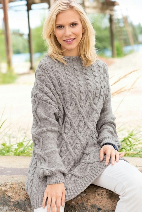 Размеры 38/42 ВАМ ПОТРЕБУЕТСЯ: Пряжа (60% шерсти, 40% шерсти альпака; 125 м/50 г) — 700 г серой; спицы №6; круговые спицы №6. УЗОРЫ И СХЕМЫ РЕЗИНКА Попеременно 1 изнаночная, 1 лицевая.