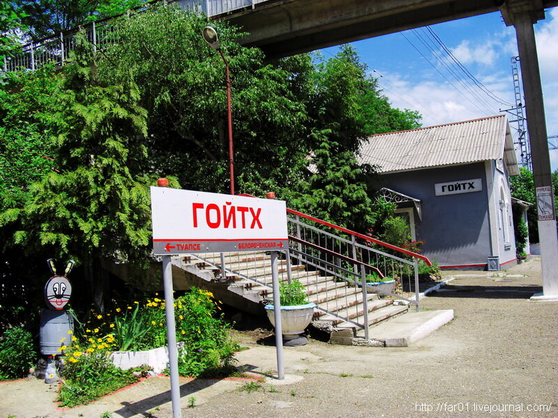 Станция построена в 1913 году. Расположена в глубокой выемке на северном склоне Главного Кавказского хребта севернее Гойтхского перевала, в 6 км от села Шаумян. Её название в переводе с адыгейского языка означает по одной из версий "хребет с колючим кустарником". Гойтх - горный перевал в Туапсинском районе Краснодарского края, разделяет долины рек Пшиш и Туапсе; высота – 336м.
