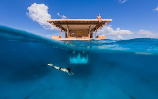 Для тех, кто хочет на неделю уйти от мирской суеты, уединившись от всех на райском острове, шведский дизайнер Макаэл Генберг разработал плавающую станцию. По отзывам тех, кто уже там побывал, это воплощенная наяву мечта. И здесь можно не только купаться в бирюзовой воде и есть свежие фрукты, но и любоваться потрясающим подводным миром. Станция является частью отеля Manta Resort и находится близ архипелага Занзибар в Танзании. Это место у дайверов считается настоящей находкой из-за живописных кораллов и огромного количества красивых рыбок. Сама станция представляет собой двухэтажную конструкцию. На крыше мини-гостиницы днем можно загорать и прыгать в голубое море с 2-метровой высоты, а ночью – созерцать, любуясь бескрайними просторами космоса и сияющими звездами. Гостиница закреплена на четырех крепких тросах, которые не позволят сооружению уйти в открытое море.