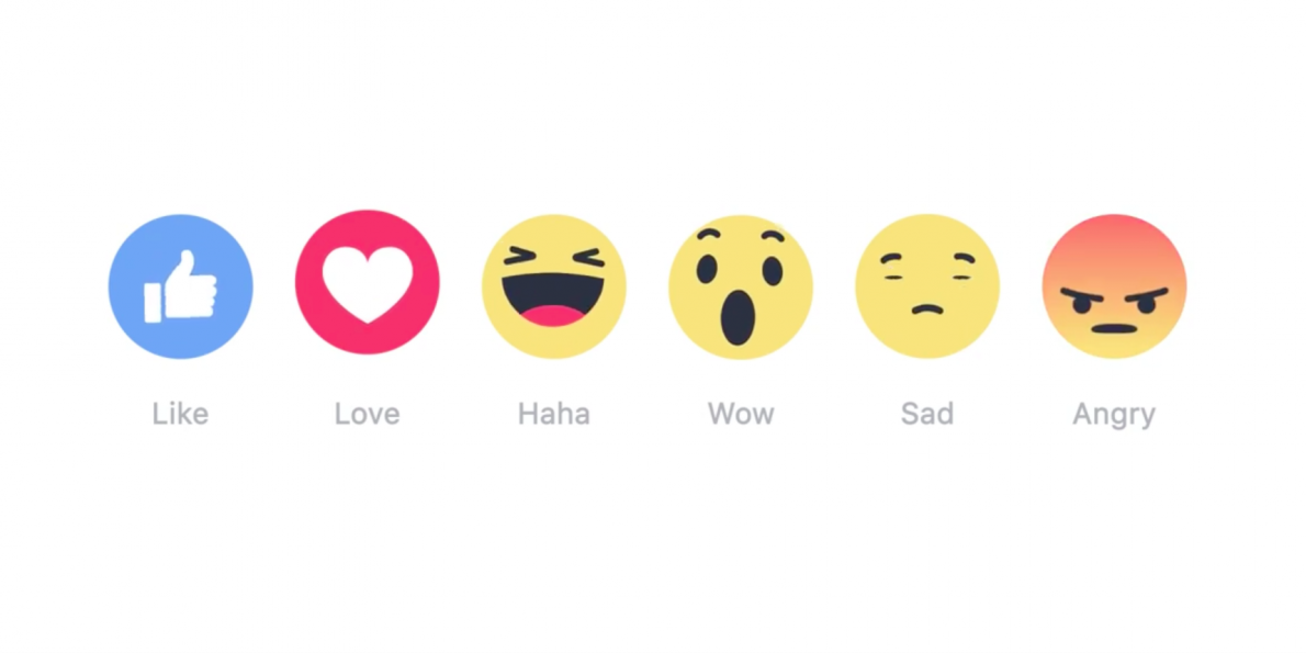 В феврале 2017 года (на дворе 2018, то есть уже год прошёл), FB официально объявил, что лайки, которые правее синего, которые он называет Reactions, весят больше, чем синий обычный like. Cтатья в Telegraph, вот, например, этот момент отмечает. И было много других аналогичных публикаций в англоязычных СМИ.