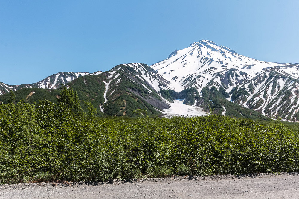 Изначально целью поездки был вулкан под названием Горелый, но так как выехали мы позднее намеченного ( возвращали багаж из рук работников аэропорта ), то взойти наверх мы капитально не успевали. Что же, пришлось действовать по альтернативной программе, но в целом тоже неплохой. Природ на Камчатке удивительная, только вот лето, особенно в горах, какое-то не очень летнее. Атмосфера ранней весны на самом деле, только почему-то много зелени. Но снега в целом тоже очень много. Ландшафты меняются с набором высоты. Обзорная площадка, стенды зачем-то сняли. Вулканы и дорога в сторону города. Зеленый, колючий, живой ковер. Снежок. Чистый. От города 50 километров. Местами конечно ветер наносит песочек. Элементы оффроада. Мы на месте. Кальдера вулкана Горелый. Пейзажи - неземные. Растений почти нет. Тает... Возвращаемся обратно. Собственно дорога к водопаду идет сначала через довольно дикие заросли. Затем долгий снежный подъем и вот он красавец водопад. Поймал радугу. Хорошая такая дырень в снег