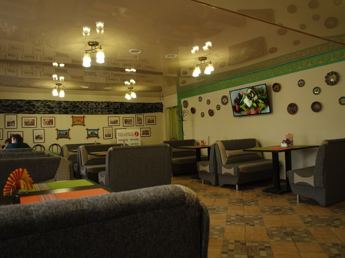 Хорошенько прогулявшись по г. Саки, я почувствовала голод. «Где можно славно покушать перед отъездом домой?» - подумала я. Вспомнила, что напротив автостанции видела чебуречную и устремилась к ней. Голод уже не давал возможности оглядываться по сторонам, терзал мою душу. Живот выкрикивал: «Полный вперёд!» Через 10 мин я была уже на автовокзале, возле «Чебуречной №1». Холод и дождь затолкнули меня в чебуречную. Открыв двери, повеяло тепло. В кафе была уютная атмосфера, стояли диванчики с небольшими столиками. На светло-зелёных обоях были развешаны картины и тарелочки с орнаментом. Когда я села, официант сразу же принесла меню. А минут через 5-10 стоял уже с блокнотом, чтобы записать мой заказ. «Ух, чувствует, что я очень голодна!» - подумала я и заказала 2 блюда: янтык с мясом и куриную отбивную. Здесь тоже не прошлось ждать долго, через 10 минут мясные лакомства стояли на столе. Съела всё очень быстро, то ли из-за того, что была очень голодна, то ли из-за того, что было действительно