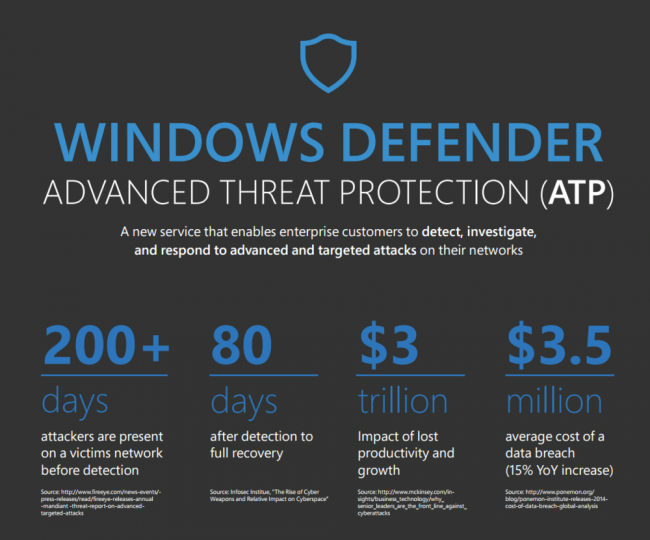 Сервис Advanced Threat Protection (ATP) для Защитника Windows станет доступен в Windows 7 SP1 и Windows 8.1. Корпорация Microsoft решали снабдить корпоративных пользователей расширенной защитой от киберугроз на время перехода со старых операционных систем к Windows 10. Первоначально сервис Advanced Threat Protection был доступен только для Windows 10. Он позволяет выявлять, анализировать и предотвращать атаки повышенной сложности в корпоративных сетях. Сервис может работать с любыми антивирусами, хотя лучше всего, по мнению Microsoft, разумеется, сочетается с Защитником Windows. Решение распространить ATP на Windows 7 и Windows 8.1 кажется на первый взгляд довольно неожиданным, если учесть, что обе операционные системы уже вышли из периода основной поддержки и сейчас находятся на расширенной, а значит, не должны получать никаких новых функций. Но компания Microsoft, видимо, решила снабдить пользователей устаревших систем надежной защитой на период перехода к Windows 10. Возможно, предл