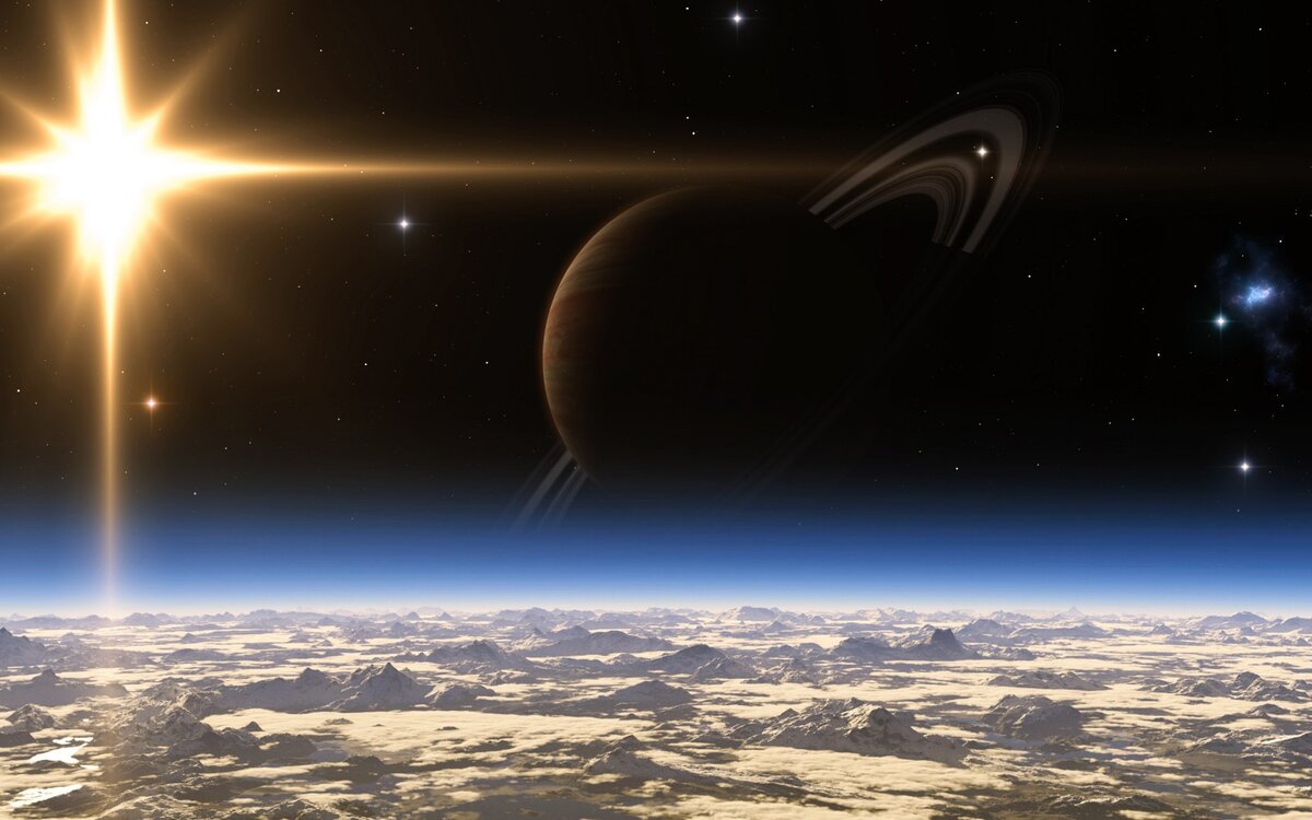 Сатурн - шестая планета от Солнца - назван в честь древнеримского бога урожая. Он расположен почти в 10 раз дальше от Солнца, чем Земля. Это последняя планета, видимая на земном небе невооруженным глазом.