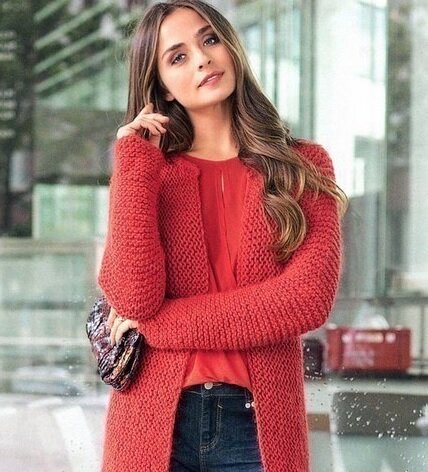 Длина: 76/75 см. Вам потребуется: пряжа (50% натуральной шерсти, 50% полиакрила 100 м/100 г) 800/900 г красной = 8/9 мотков спицы № 8 и 9. Техника вязания. Платочная вязка, спицы № 9: лиц. и изн. р. - лиц. п.