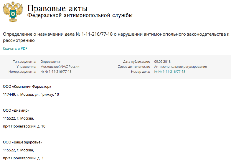 2 новости. Хорошая: благодаря работе ФБК раскрыт очень крупный картель на госзакупках в сфере медицины! Не такой крупный, как в деле Пригожина, но все же. В августе 2017 года мы подали жалобу на 688 аукционов на общую сумму 2,072 млрд рублей, проделав перед этим большую работу. И на днях дело о нарушении антимонопольного законодательства наконец было возбуждено. 3 компании: ООО " Компания Фармстор", ООО "Диамир" и ООО "Ваше здоровье" устраивали липовую конкуренцию и брали госконтракты на поставку противоопухолевых препаратов практически по максимальной цене. Эти компании просто подмяли под себя рынок и держали высокие цены. Незаконно наживались на здоровье людей, в прямом смысле. Конечно, мед.чиновники были в курсе картеля и не могли не получать за него откат. Есть основания полагать, что под компании затачивали тендеры путем составления "правильного" Технического задания (сейчас мы эту информацию проверяем). Уже сейчас материалов дела достаточно, чтобы начать проверку по ст. 178 УК