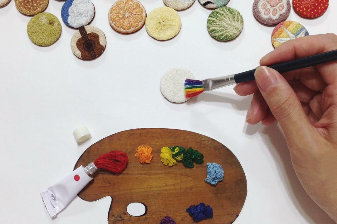 Вышивка разная нужна, вышивка разная важна... Сколько бы я ни восхищалась различными техниками, приемами и авторами, всегда находится что-то новое и оригинальное! Воистину воображение человеческое неисчерпаемо :) Сегодня я бы хотела познакомить вас с японской мастерицей, выступающей под ником Ipnot. Как говорит сама девушка, такой необычный никнейм произошел от ее детского прозвища (у кого есть идеи, что бы это могло значить — пожалуйста, поделитесь в комментариях!). Да и с вышивкой она познакомилась, еще будучи маленькой девочкой — ее бабушка любила вышивать на досуге, передав любовь к творчеству своей внучке. Визитная карточка Ipnot — французские узелки: «Я использую иглу как кисть для рисования, узелок за узелком наношу «мазки» на канву — получается нечто вроде рельефной живописи нитками». Мастерству, упорству и терпению вышивальщицы можно только позавидовать, ведь ее основной вид деятельности — потрясающе реалистичные броши-кругляшки. В основном на них изображена вс