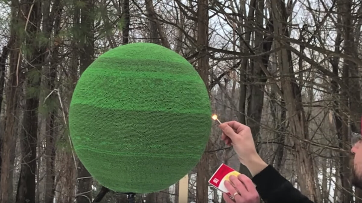 Американский художник изготовил и сжег странный арт-объект. Что произойдет, если начать склеивать спички? Их головки немного шире, чем палочки, поэтому скрепляемые элементы постепенно начинают образовывать сферу. Вдохновившись этой закономерностью, художник Бен Эхлс решил довести начатое до логического конца и построить из спичек идеальный «глобус». На все про все у Бена ушло несколько месяцев, в общей сложности поверхность составили 42 тысячи серных головок. После этого Эхлс поднес к шару зажженную спичку. С другими работами Бена Эхлса можно ознакомиться на его YouTube-канале All Is Art. Там много всего странного, но есть и реально крутые штуки. Techdiver.ru