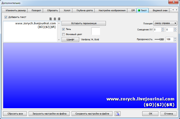 FastStone Image Viewer предлагает два способа: ставить "водяные знаки" по одному или пакетно. В первом случае проставляется только изображение, во втором - текст либо изображение. Изображение нужно подготовить заранее. Обычно это прямоугольная плашка с указанием автора или ссылки на его блог/сайт. Эту плашку можно сделать в самой программе и сохранить в формате GIF. Фон желательно сделать прозрачный. Лучше сделать плашки нескольких размеров для того чтобы они гармонично смотрелись на фотографиях разных разме