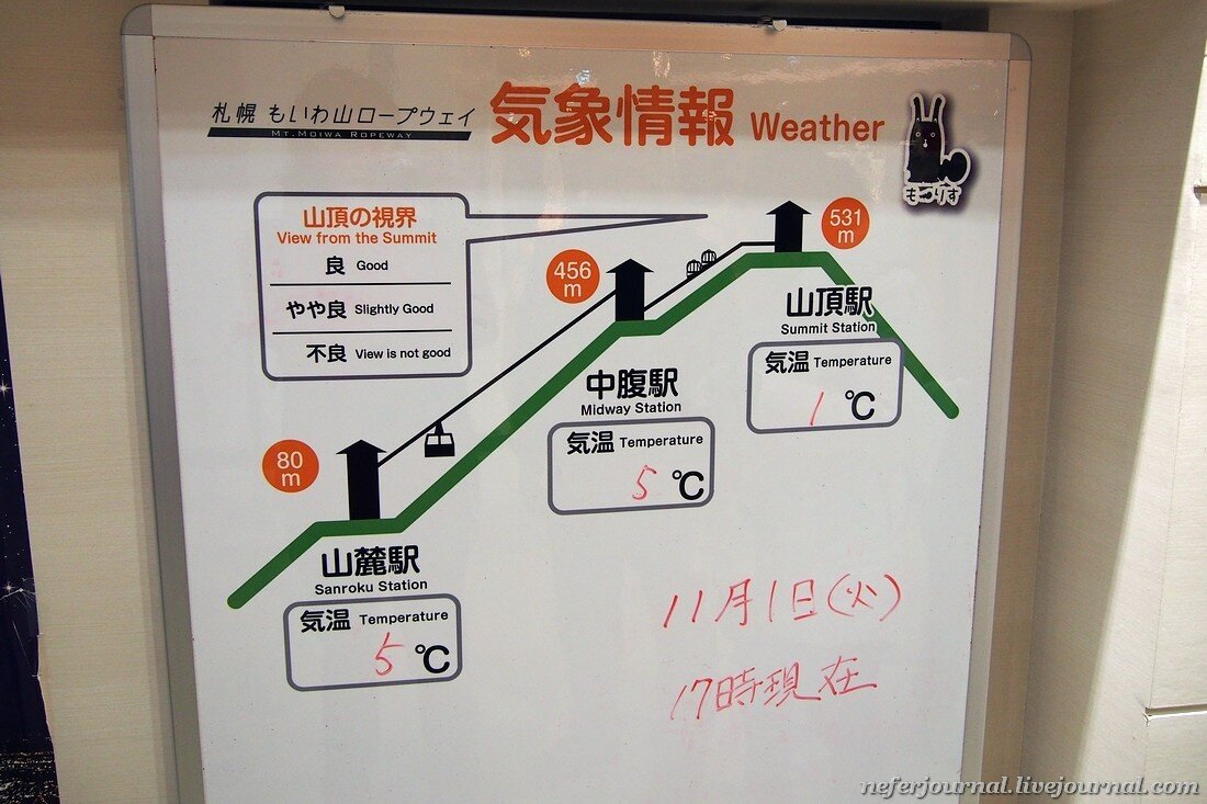 В первый же день, когда прилетела в Саппоро, поехала на обзорную площадку. Уже стемнело, делать было нечего, путеводитель обещал эффектный вид на город именно в вечернее время. В общем как раз вариантик. Заодно на таких подъемниках покаталась.