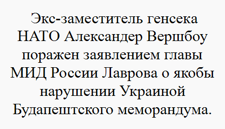 Вершбоу потрясен заявлением Лаврова о невыполнении Украиной Будапештского меморандума