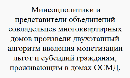 Монетизацию льгот и субсидий в ОСМД будут в два этапа