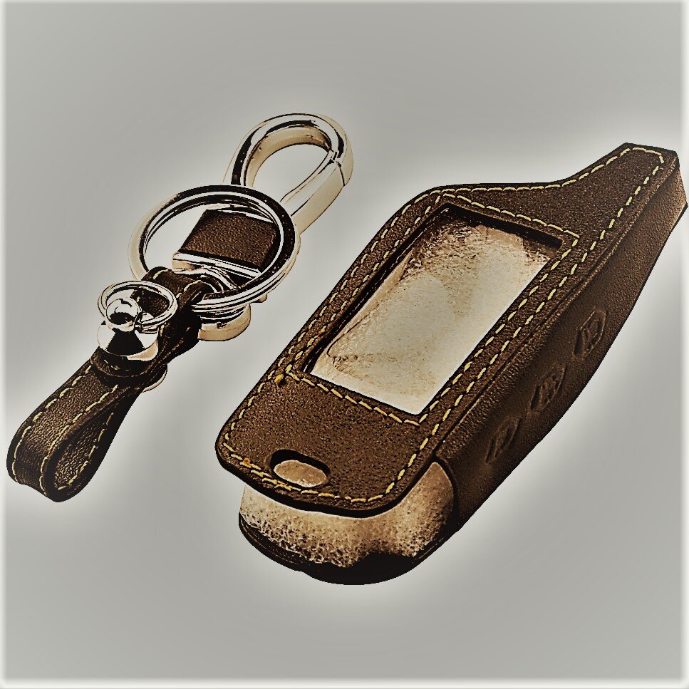 1.Кожаный чехол с брелком для автомобильной сигнализации