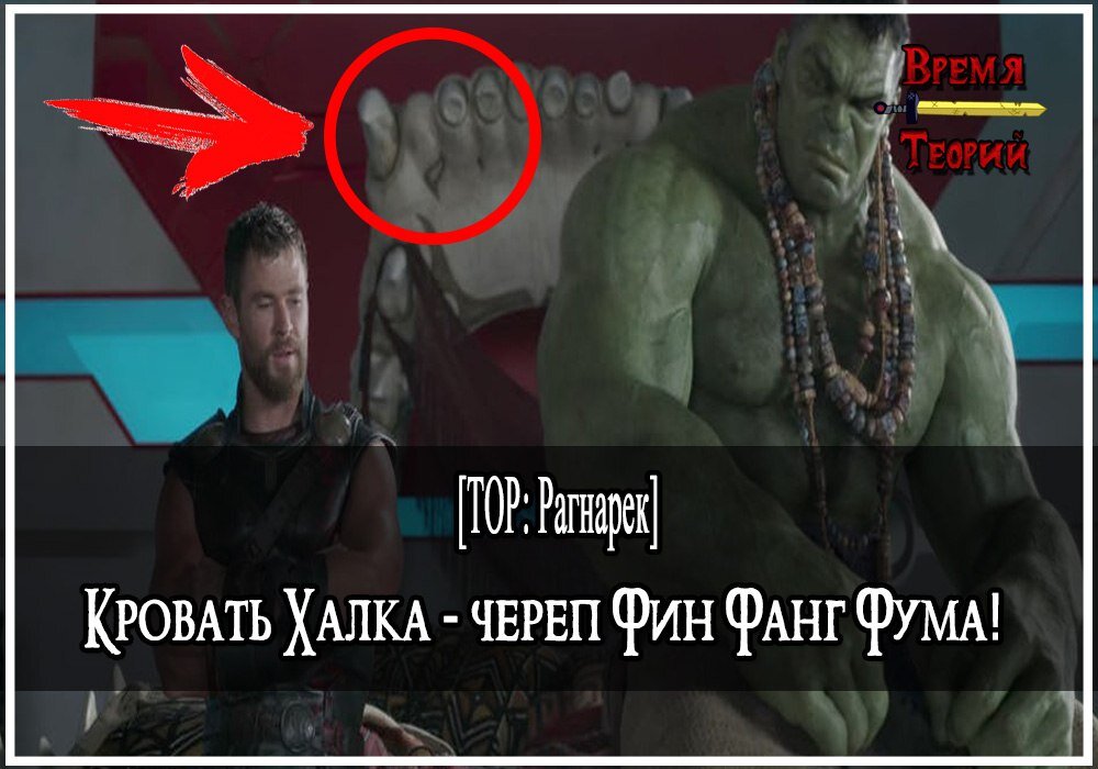 Кровать Халка в пентхаусе Гроссмейстерской башни (о которой он отрывает челюсть и бросает перед Валькирией, чтобы остановить ее от ухода), является черепом Фин Фанг Фума.
