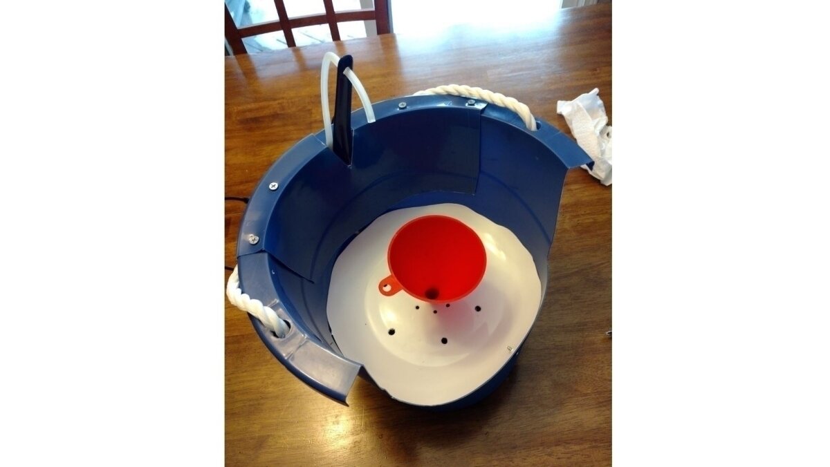 Поильник с «проточной» водой изготавливается из ведра и помпы для аквариума. Многим котоводам знакома ситуация, когда питомец требует открыть кран в ванной или на кухне, чтобы утолить жажду, а заодно и поиграть со струйкой воды. Кошки это очень любят, хозяевам же приходится совершать лишние телодвижения. Поильник с «проточной» водой, который можно сделать самостоятельно, избавляет от необходимости открывать и закрывать кран для четвероногого друга. Конечно, вода в этом случае будет условно проточной, зато все остальные необходимые ощущения любимец получит тогда, когда ему заблагорассудится. Для изготовления импровизированного фонтанчика понадобятся: пластиковое ведерко, пластиковая тарелка или старая миска, ложка для обуви, воронка, резиновая трубка длиной 40 см, 5-вольтовый адаптер, самая бюджетная погружная помпа для аквариума. Вырезается кусок ведра. В нем делается небольшой V-образный вырез под размер ложки для обуви, а также отверстия в ободке. В ведро кладется помпа. Кусок ведра