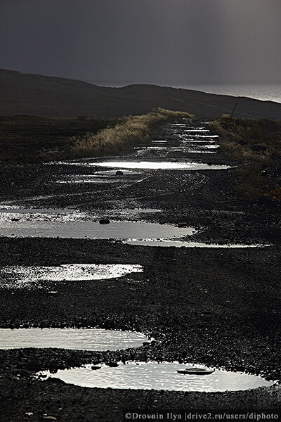 В России много брошенных городов и поселков, но самые интересные находятся далеко от людей. Кольский в советское время был просто усеян военными городами, но после 90-х большинство из них стали брошенными. В один из таких мы попали, и честно говоря, было жутковато от увиденного. Неспроста этот городок раньше был секретный. Дорога туда выглядела мистически. Лужи, как зеркала, отражаются на солнце. Потом дорога пошла идеально ровная и широкая, местами едем 60-80кмч. Мы назвали её «Заполярный автобан». Вот это кайф, давно так быстро не ездили! Промчали по ней, не останавливаясь на фото стопы. Вдалеке видны наши любимые шары. Автобан кончился в брошенном военном городке Скорбеевка. Выглядит жутковато, все разрушенное и убитое, на улице никого, как Чернобыль. А когда-то здесь кипела жизнь. Гарнизон по периметру был обнесен колючкой. Действовал строгий пропускной режим, и просто так было не попасть. Изначально гарнизон начинался с армейских палаток, потом построили деревянные