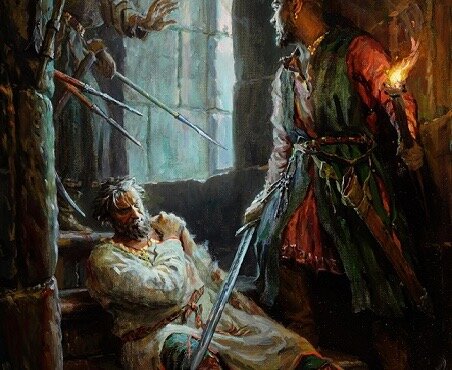 Несмотря на уверенность в собственных силах, князь держал рядом с собой меч святого Бориса, который вешал над постелью. Однако один из заговорщиков, ключник Анбал, смог заранее выкрасть оружие, чтобы облегчить убийцам совершение задуманного. И тут – снова вопрос. Если учесть, что перед воплощением своего замысла убийцы спускались в винные погреба, чтобы «набраться храбрости», неужели князь ничего не слышал и не заметил, что меча нет на привычном месте? Как бы то ни было, но после возлияния заговорщики вернулись к покоям князя. Постучали, и на вопрос: «Кто там?», один из них назвался именем любимого слуги Боголюбского Прокопием. Князь, прекрасно знавший голос слуги, ответил: «Нет, это не Прокопий!» и, естественно, не отпер дверь. Тогда убийцы начали ломать дверь, и странное дело – на эти звуки никто не среагировал.