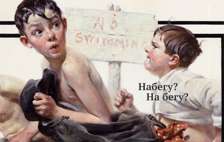 Не очень хорошая практика — делать что-либо на бегу, но порой по-другому просто не получается. Вы, наверное, уже заметили: «на бегу» мы написали раздельно. Есть ещё, конечно, форма глагола «набегу» от «набежать», но мы сейчас говорим именно о наречии.