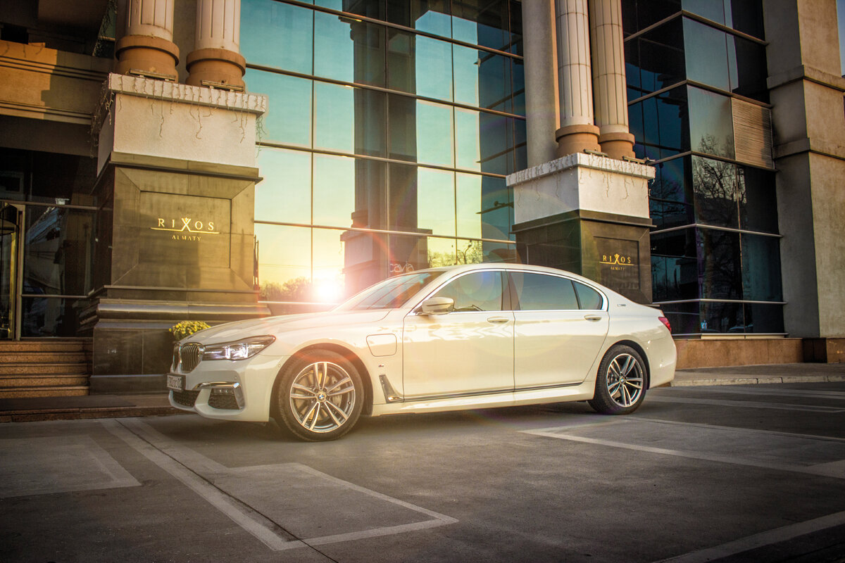 Наша BMW 740 Le xDrive – топовая версия среди гибридов. Удлиненная база, максимальное техническое оснащение, система интеллектуального полного привода – все при ней. Под длинным рельефным капотом – неожиданно небольшой бензиновый мотор объемом 2.0 литра. Но не в размере дело…