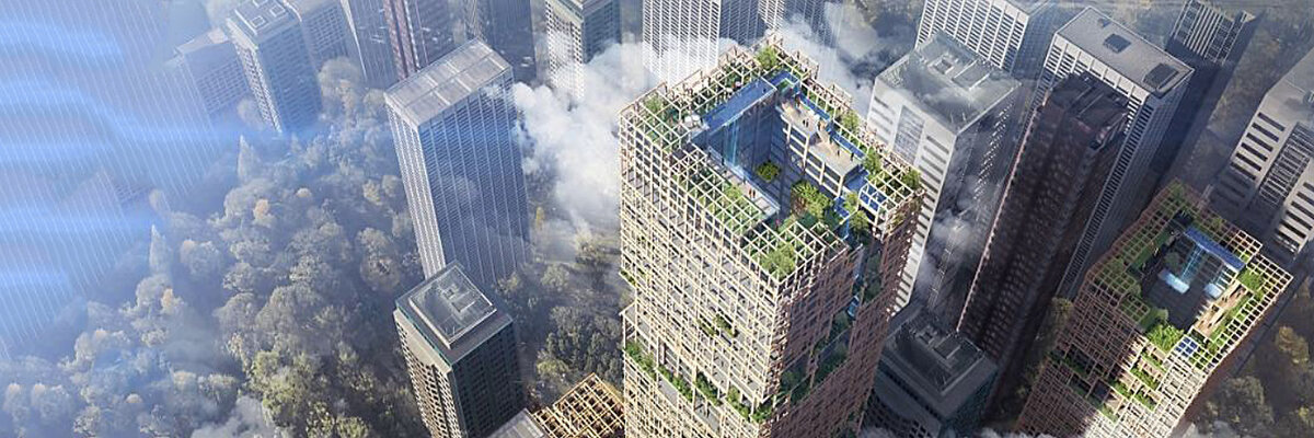 Японский разработчик Сумитомо объединился с архитекторами и дизайнерами Nikken SEKKEI, объявив о планах на строительство самого высокого в мире деревянного небоскреба. Небоскреб площадью 1108 футов (350 метров) должен быть завершен к 2041 году и расположен в центре Токио. Деревянный небоскреб является частью проекта W350 экологически чистого развития, завершение которого будет означать 350-летие сумитомо. Концепция проекта была подготовлена научно-исследовательским институтом Цукубы Сумитомо, который, как надеется компания, поможет «превратить город в лес». В плане представлены 70 этажей из стали и древесины площадью 6500 квадратных метров каждый и 455 000 квадратных метров общей площадью. Для строительства потребуется 6,5 миллионов кубических футов древесины для строительства небоскреба с усиленной конструкцией, разработанной в сотрудничестве с архитектурными дизайнерами nikken sekkei, чтобы предотвратить любые повреждения, вызванные землетрясениями или шквалистым ветром. Проекта