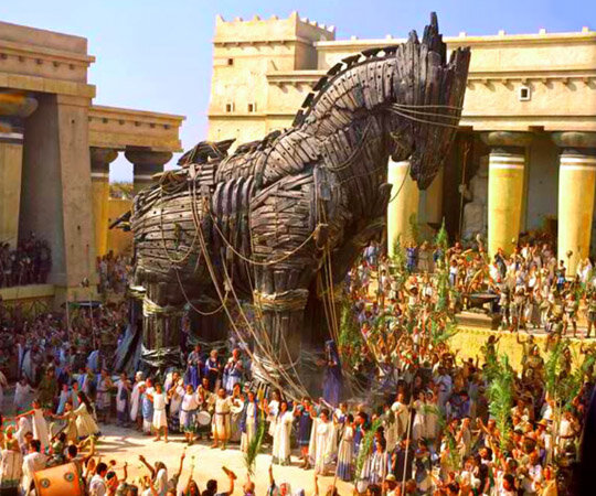 Однажды, после 10 лет непрекращающейся войны и зверств, трояны вышли на битву и никого не нашли на поле боя, чтобы встретиться с ними. Медленно они двинулись в сторону греческого лагеря и кораблей. Они не нашли палаток, только пепел костров по-прежнему немного теплый на ощупь, груды и ямы человеческого мусора и вообще никаких кораблей. «Это все, я с трудом могу в это поверить», - сказал один. «Наконец-то настал день». «Наконец-то конец, - сказал другой. «Я знал, что они уйдут, когда уйдет Ахиллес», - сказал третий. «Это была только одна армия».