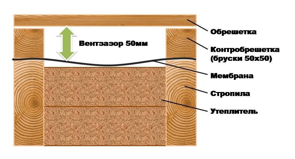 Утепление крыши качественно и надежно можно только сверху, до монтажа супердиффузионной мембраны, устройства контробрешетки и так далее. То есть пока у вас открыто межстропильное пространство и есть доступ к нему, то можно гарантировано уложить утеплитель без пропусков и ошибок. Но часто приходится утепляться снизу Утепление снизу - это метод, при котором утеплитель между стропил вкладывается снизу, когда сверху уже сделан весь пирог и покрыта кровля. Кроме неудобства и некачественного утепления с пропусками, можно допустить досадную ошибку, которая обязательно даст о себе знать. Дальше читаем очень внимательно: Хотель лучше, получилось как всегда: «напихали» утеплителя столько, что все испортили! При утеплении снизу сложно (практически невозможно) контролировать уровень заполнения межстропильного пространства, а это очень важно! Смотрите рисунок, как должно быть правильно: Обратите внимание, что пленка не крепится внатяг, а даже немного провисает - так и должно быть! Кроме того, обес