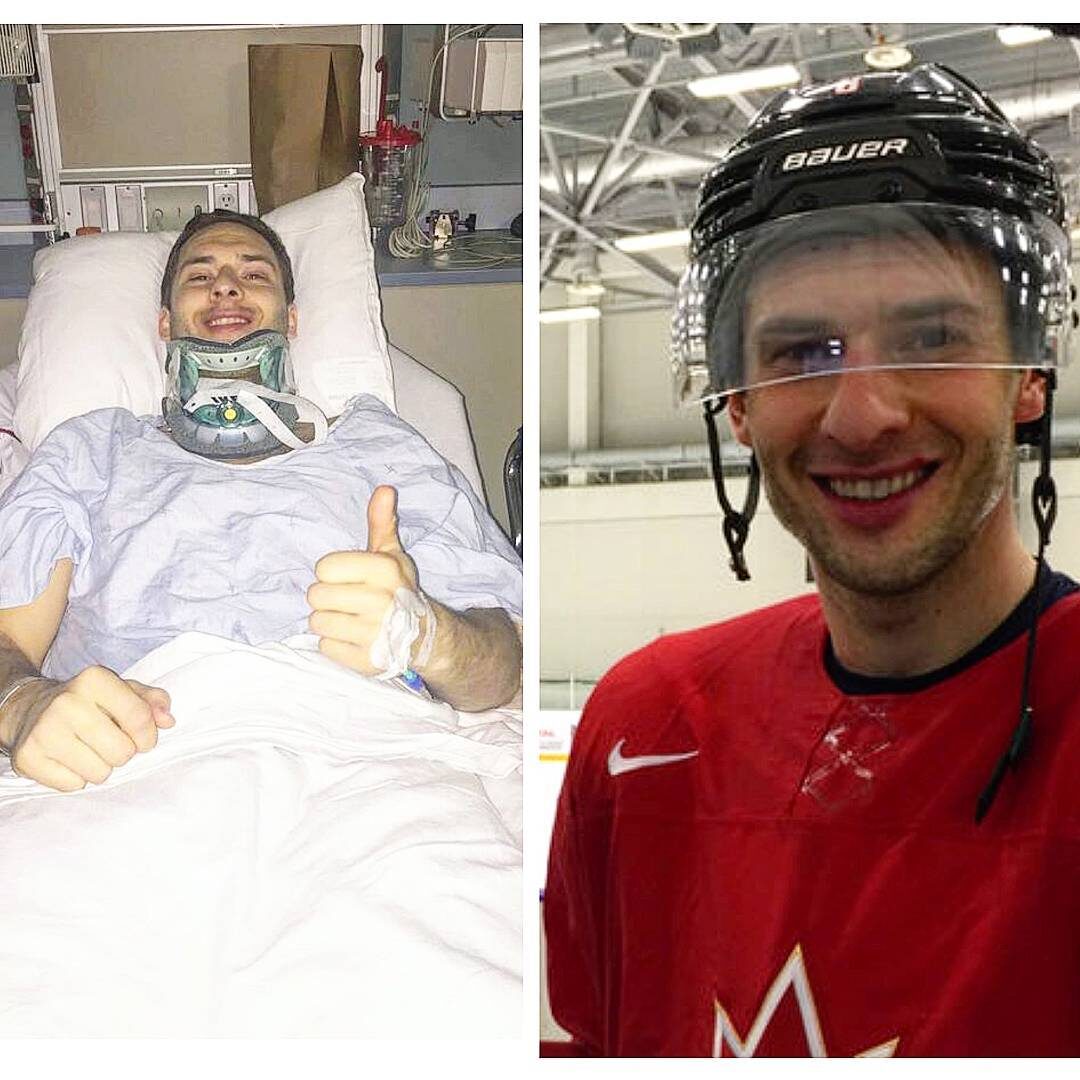 Канадец Войтек Вольски сделал дубль в ворота Швейцарии. В октябре 2016 года Вольски получил страшную травму в матче КХЛ между его «Магниткой» и «Барысом». Во вроде бы обычном эпизоде борьбы за шайбу нападающий неудачно влетел в борт головой и сломал два шейных позвонка. Первые мгновения после удара были самыми страшными – Вольски не мог пошевелить ни рукой, ни ногой. К счастью, когда игрока доставили в больницу, конечности его уже немного слушались. Но обследование выявило не только переломы позвонков, но и ушиб спинного мозга. Эти травмы казались настолько серьезными, что под вопросом поначалу было даже не продолжение хоккейной карьеры, а просто возвращение к нормальной жизни. «Помню, как лежал на следующий после травмы день в больнице в Магнитогорске, и голова моя была забита тем, вернусь ли я в хоккей, тем, как вообще буду дальше жить. Я знал, что снова буду ходить. Но был совсем не уверен в том, что смогу заниматься любимым делом. И что тогда делать – просто не представлял. Да