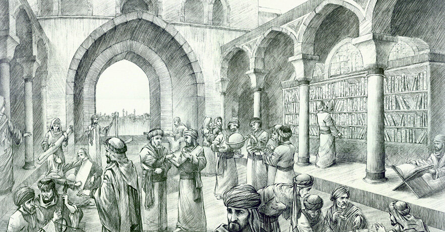 Дом Мудрости был библиотечным и переводческим институтом в Багдаде в Аббасиде, Ирак. Это было ключевое учреждение в Движении переводов и считалось важным интеллектуальным центром исламского золотого века. Дом был непревзойденным центром изучения гуманитарных и исламских наук, в том числе исламской математики, исламской астрономии, исламской медицины, исламской алхимии и химии, зоологии и исламской географии. Опираясь на персидские, индийские и греческие тексты, в том числе Пифагора, Платона, Аристотеля, Гиппократа, Евклида, Плотина, Галена, Сушруты, Чараки, Ариабхаты и Брахмагупта, ученые накопили великую коллекцию мировых знаний и построили на ней свои собственные открытия. Вместе со всеми другими библиотеками в Багдаде Дом Мудрости был разрушен во время монгольского нашествия в Багдад в 1258 году. Было сказано, что воды Тигра бежали черными в течение шести месяцев с чернилами из огромного количества брошенных книг в реку. Объем знаний, потерянных в этом году, неописуем. Еще более
