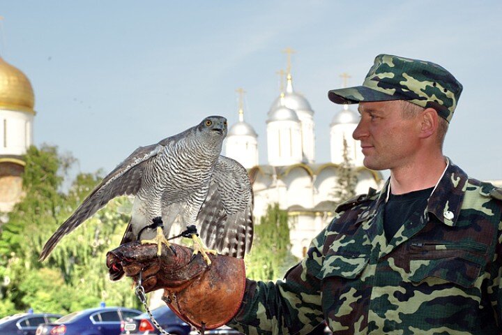 В 1973 году в Кремле появилась орнитологическая служба: на борьбу с воронами были брошены пернатые хищники. Дело в том, что вороны всегда наносили памятникам Кремля большой вред. Мало того, что они «пачкают» купола и крыши, так еще и сдирают золотое покрытие. Птицы обожают кататься зимой на куполах кремлевских соборов: садятся у самого креста и катятся вниз, притормаживая когтями. Сусальное золото такого «варварства» не выдерживает.