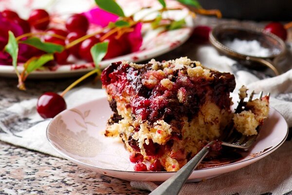 Рецепт вишневого пирога с шоколадом и овсяной посыпкой