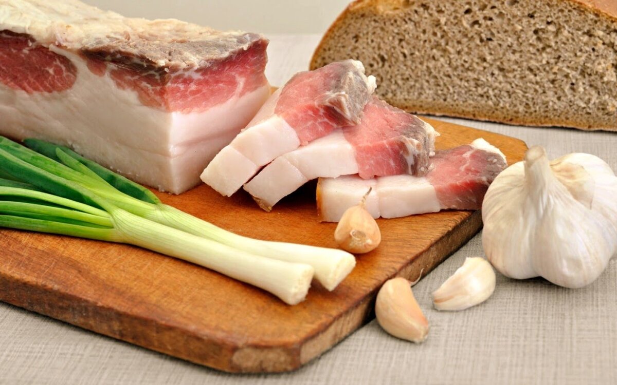 Свиное сало считается традиционной украинской пищей, однако любят и уважают его во многих других странах также. Особо почетное место оно занимает в рационе сельских жителей. Этот чрезвычайно вкусный и питательный продукт является отличным источником энергии и ценных веществ. Основные факторы, которыми определяется польза и вред свиного сала – витамины, калорийность, состав данного продукта. Что входит в состав продукта? Соленое свиное сало обладает множеством полезных свойств благодаря своему насыщенному химическому составу. Среди его компонентов можно увидеть жирные кислоты, минералы, антиоксиданты. Продукт богат жирорастворимыми витаминами А, Е, F, D, В, С, РР, которые легко усваиваются. В нем содержатся такие минералы и микроэлементы, как фосфор, медь, цинк, кальций, калий, натрий, магний. Незаменимые для организма жирные кислоты улучшают работу головного мозга и прочих органов, восстанавливают ткани, участвуют в кроветворении. В сале можно выделить такой состав кислот: линолевая;