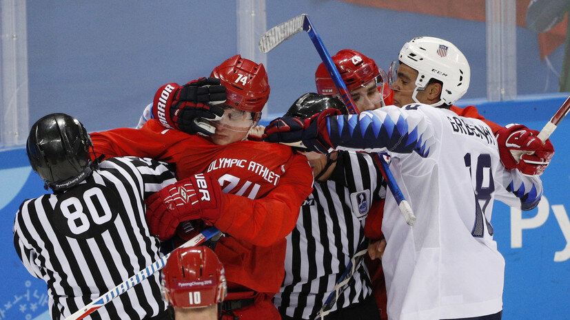 Мужская сборная России по хоккею проводила свой заключительный матч группового этапа на Олимпиаде в Пхёнчхане. Подопечные Олега Знарка играли против национальной команды США. В случае победы россияне могли занять первое место в группе. Хоккеисты сборной США устроили потасовку с игроками российской команды в матче третьего тура группового этапа Олимпийских игр 2018 года в Пхёнчхане. При счёте 2:0 во втором периоде американцы спровоцировали драку, дважды ударив по рукам голкипера сборной России Василия Кошечкина. Россияне вступились за вратаря. Николай Прохоркин, оформивший дубль, и американец Крис Бурк заработали двухминутные удаления по итогам драки.
