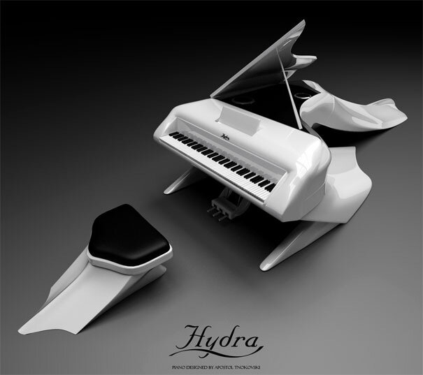 Дизайнерское фортепиано Hydra Piano Дизайнер Апостол Тноковский, после просмотра одного из выступлений Леди Гаги по телевизору, был так вдохновлен её выступлением, что сразу принялся делать макет фортепиано которое подошло бы для неё, вместо того черного квадратного пианино, что стояло на сцене. Источником вдохновения для создания фортепиано в честь Леди Гага послужил не только экстравагантный стиль самой певицы, но и легенда о Гидре — мифическом морском чудовище, в честь которого музыкальный инструмент и получил свое название. Творение дизайнера отличается необычным дизайном, вполне достойным оригинального вкуса Леди Гага — плавные линии, неожиданные изгибы, нетрадиционная конструкция фортепиано способны привлечь к инструменту всеобщее внимание. Design from journal Border