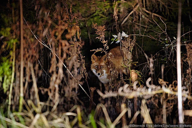 Старая история, но поскольку блог завёл недавно, то расскажу сейчас. Еду значит по ночной трассе, машин нет, осень, темнотища вокруг. И тут бац, как всегда внезапно, из темноты выбегает лиса, и бежит через дорогу, прямо под машину! Резко торможу, остановить не успеваю, фух успела проскочить перед бампером… Сдал назад, смотрю сидит на обочине и смотрит на меня. Быстрей за фотоаппарат, благо фотографы всегда возят его с собой. Пока доставал, перебежала на дорогу. Я развернулся, подъехал, она снова перебежала, уже в кювет. Тогда подъехал прямо к краю обочины, посветил фарами. До нее метров 10 было. А теперь за дело! Попозировала даже, такая любопытная оказалась, махнула хвостом и исчезла в лесу. Так вот оказывается, зачем бросилась под машину, хотела попасть на просторы Дзен! Смотрите также блог в Instagram и Telegram.