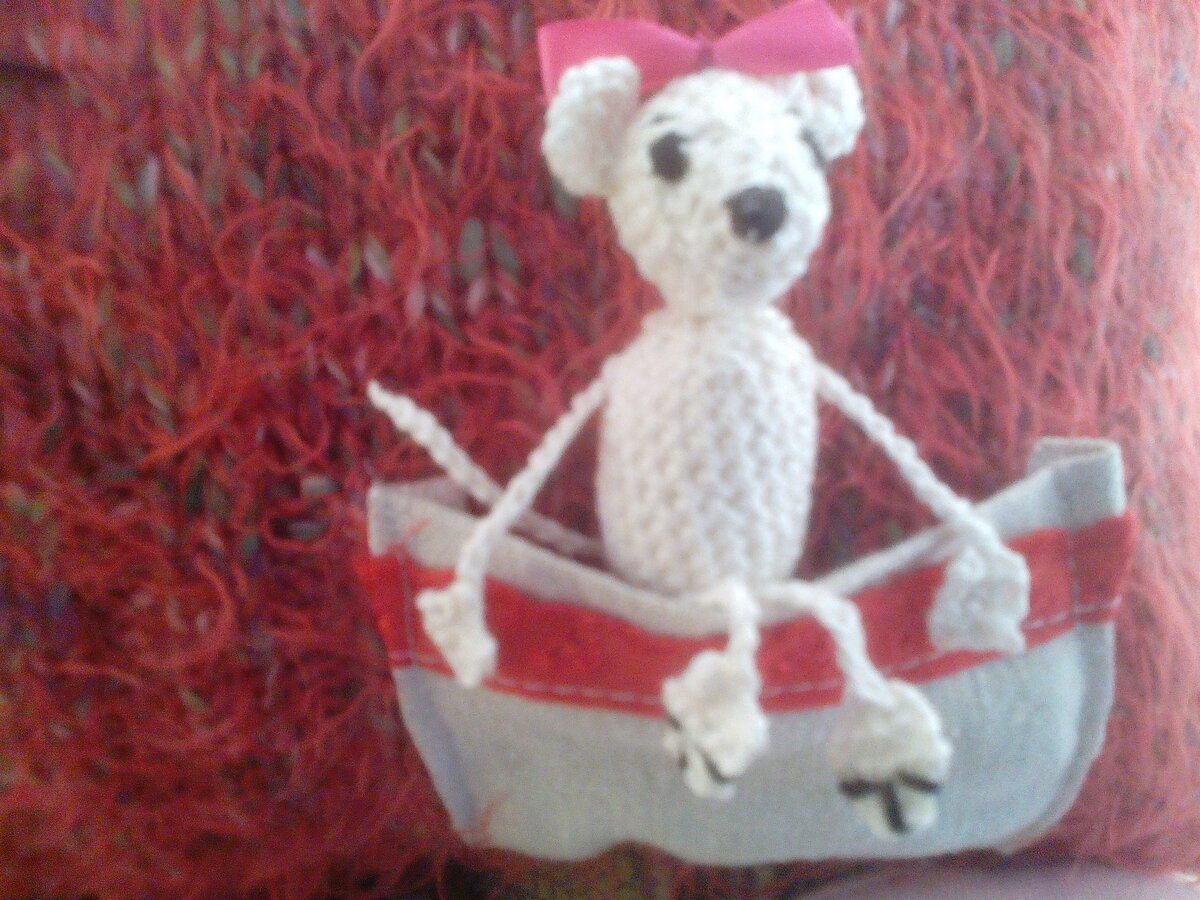 Такую карманную мышку можно связать на радость детям, приспособить как брелок, просто подарить кому то как талисманчик или использовать как дополнение к своему творческому подарку, как сделала это я (об этом я расскажу вам в следующий раз). А сегодня речь пойдет как сделать эту милую мышку. Вязала я ее крючком из ниток "Ирис", но можно, конечно же использовать любую пряжу, да и цвет на ваш вкус. Мне захотелось беленькую. Для начала надо связать головку, туловище ( у меня на 6 петель) ,лапки, хвостик. Вот такие детальки получаются. Нитки нужны для того, чтобы в дальнейшем их использовать для пришивания. Затем нужно собрать мышку:пришить к туловищу голову, лапы, хвост, к голове уши. Получилась вот такая мышка. Теперь осталось черной ниткой вышить нос, глазки, пальчики на лапках. Вот такая мышка получилось. Можно пришить ей бабочку или бантик, как сделала это я. Творческих вам успехов и радости вашим близким!