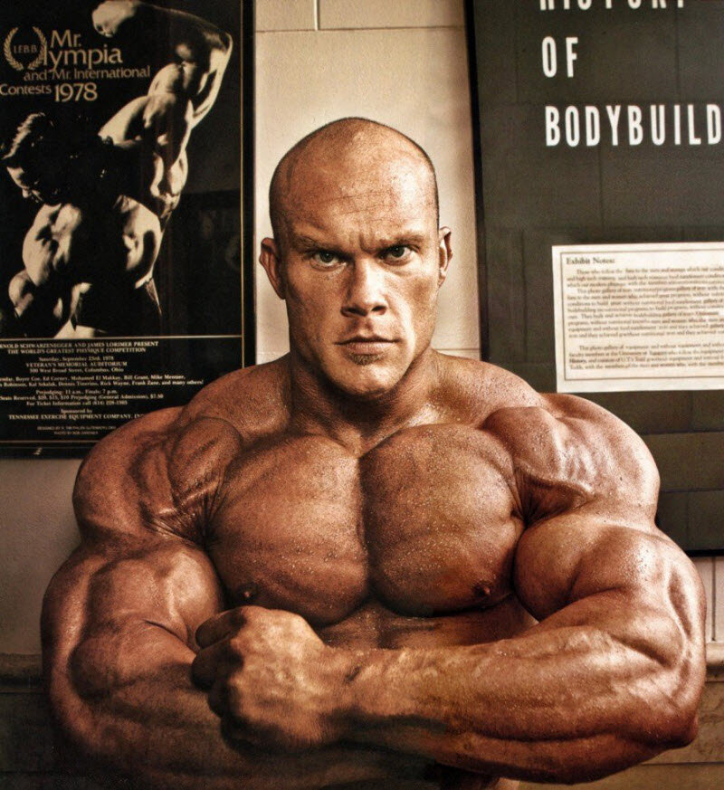 5. "Молоток" с гантелями. Суть упражнения состоит в сгибании рук с гантелями. При котором большие пальцы рук "смотрят" вверх. Это движение великолепно прорабатывает бицепсы, предплечья, и, внимание, плече-лучевые мышцы расположенные под бицепсами. Те, кто от природы не располагает высокими бицепсами, должны молиться на это упражнение, поскольку развивая плече-лучевые мышцы, оно реально увеличивает высоту ваших бицепсов. Именно за счет "молотка" в свое время поправил ситуацию с бицепсами великий Ли Хейни. В исходном положении ладони обращены к торсу, большие пальцы "смотрят" вперед. Поднимайте гантели к плечам и плавно опускайте их обратно. "молоток" можно делать как двумя руками одновременно, так и по очереди.