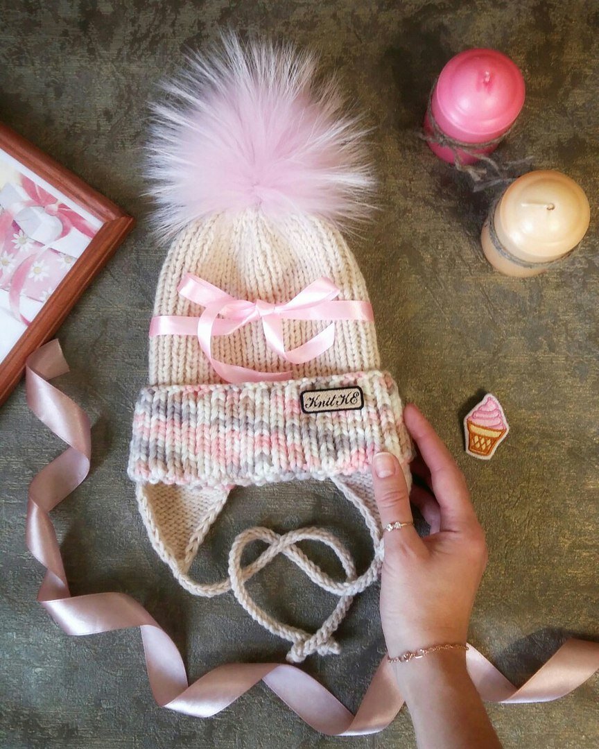 Были у меня брошка-мороженка, которую я приобрела "потому что у меня девочка", пряжа, мимо которой я не смогла пройти, и помпон, который я не смогла не купить. И всё это ждало вдохновения. Так получилась шапочка "Клубничное мороженое". А сейчас, внимание: мамы девочек (и мамы мальчиков - вдруг, у вас есть в подругах мамы девочек ) - шапочка в наличии и ищет свою маленькую хозяйку. Состав: 50% мериносовая шерсть, 50% акрил.