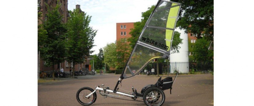 Новое слово в разговорах о велосипедах - велосипед с парусом Whike, и хотя мы привыкли видеть паруса на кораблях и в море, но эта модель едет по дорогам, подгоняемая ветром.