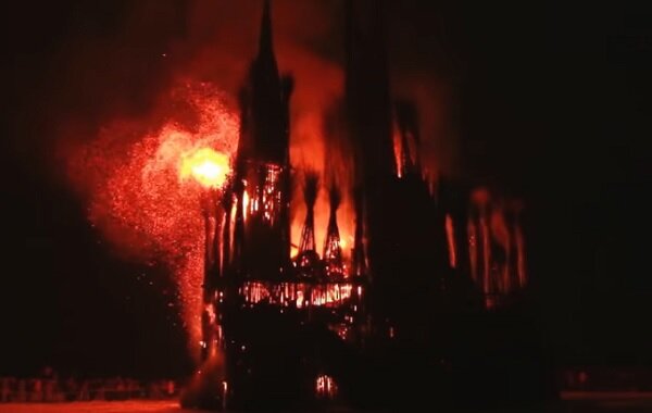 Сожжение на масленицу 30-метрового замка из веток в калужском парке было обычным перформансом архитектурного фестиваля. Подробнее читать здесь.