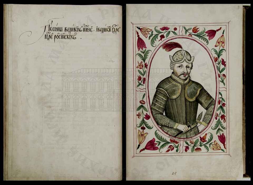 Неизвестна ни его национальность, ни его месторождение. Скорее всего, какая-то прибалтийская народность. Относился к знатному роду Викингов. Первое упоминание о нем датируется 826г. и связано это с его визитом к франкскому императору. После этого долгое время пиратствовал на Балтике, беспокоя окружающие земли. В связи с разгорающейся междоусобицей в Новгороде, по словам летописца, Рюрик был приглашен на княжение (862 г.). Это его первое изображение в российской культуре из собрания портретов великих государей, царей и великих князей России в «Царском Титулярнике» 1672 г. В то же время произошло еще одно важное событие. Двое товарищей Рюрика, отколовшись от него, пошли в Константинополь. По дороге наткнулись на маленький городок на высоком берегу Днепра. Узнав, что городок построили три брата, которых уже нет, а дань платят Козарам, завладели им. Начали в этом городе властвовать как государи. Город назывался Киевом. «Большая государева книга или корень Российских государей» («Царски