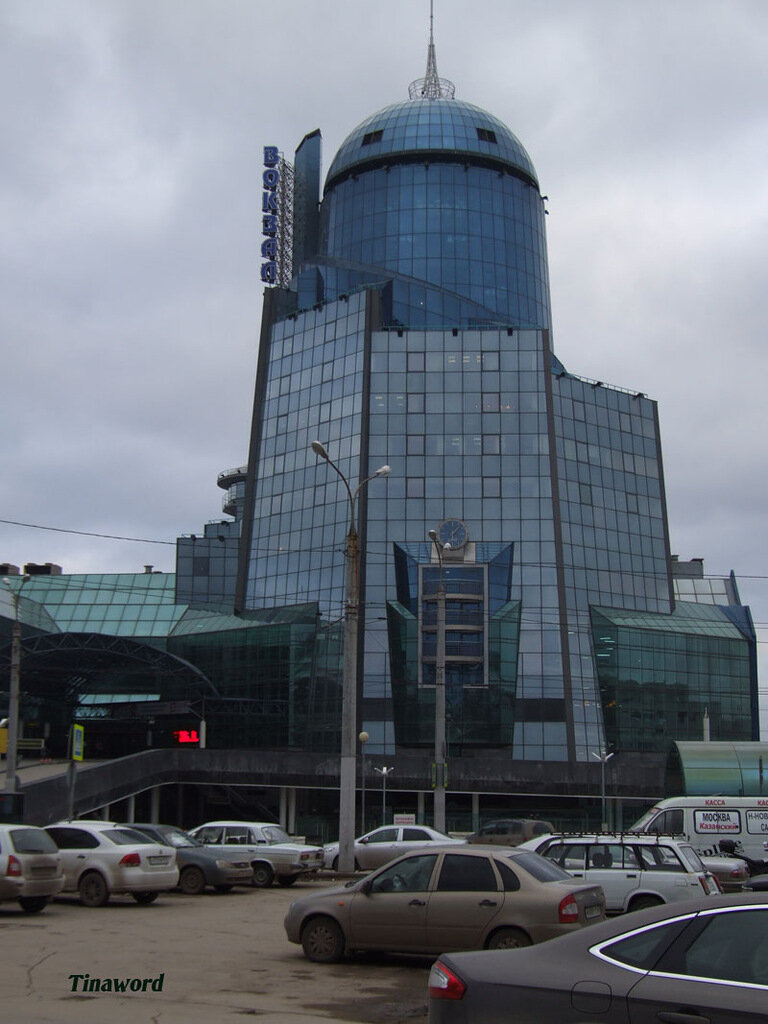 Главный центральный корпус имеет форму ракеты - это напоминание о том, что в Самаре есть музей космоса и здесь создавались советские ракеты....