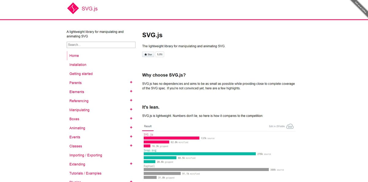 Первой библиотекой, которую мы должны порекомендовать, является SVG.js. Естественно, она абсолютно бесплатная и доступна для использования в любом типе веб-проекта.