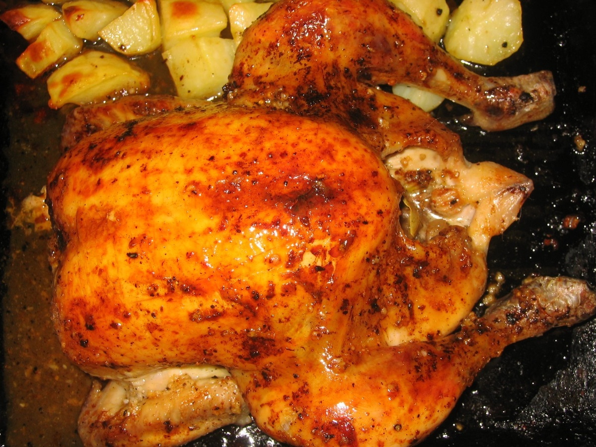 Как часто вы запекаете курицу в духовке? Мы очень любим курочку, в любых вариациях. Поэтому на столе она бывает у нас довольно часто. Хочется разнообразия, поэтому стараюсь выискивать и пробовать различные способы её приготовления. Отличная курица получилась по этому рецепту, мягкая, с лимонно-чесночным вкусом, с румяной хрустящей корочкой. Понадобится: 1 курица 1 головка чеснока 1 лимон 2 ст. л. оливкового или раст. масла 1-1,5 ч. л. соли Приготовление: Курицу помыть, обсушить. Чеснок очистить, пропустить через пресс, хорошо растереть с солью. Добавить в эту смесь масло, перемешать. Лимон вымыть, крупно нарезать и засунуть внутрь курицы. Курицу хорошо натереть чесночной смесью, оставить пропитаться на 15-20 минут. Затем отправить в разогретую духовку на часа полтора, в зависимости от размера птицы. Она должна хорошо зарумянится. Я кладу на противень рядом с курицей картофель, нарезанный крупными кусочками. Получается курица готовится вместе с гарниром. Очень вкусно! Попробуйте) Прият