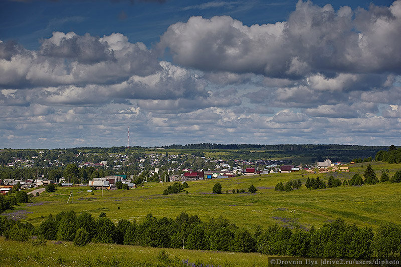 Большинство деревень в России находятся мягко говоря в запустении, а вот деревня Березник переживает подъем. На улицах все ухожено, есть даже свой фонтан и новый спорткомплекс. Как так получилось? Поедем разбираться, а по пути посмотрим и местные деревенские пейзажи, там говорят красиво! Еще не доехав до деревни, сделали остановки на подвесных мостах. На улице очень тепло, тормознули на обочине, и пошли гулять по лугам, вдыхая аромат из летнего разнотравья. Попеременно любуясь пейзажами, и отбиваясь от оводов и слепней. Это пожалуй единственный минус летом. Дорога проходит через одно из самых известных сел – Березник. Прославилось оно тем, что это село образцово содержания. На въезде встречает плакат. В самой деревне дома все обновлены, на улицах стоят мусорки, травка подстрижена. Едешь и тут на тебе, новый спорткомплекс, есть даже парк со светомузыкальным фонтаном и ресторан в деревне!. А по соседству с новой церковью вырос замок для детей. Фантастика, не иначе. Это старания